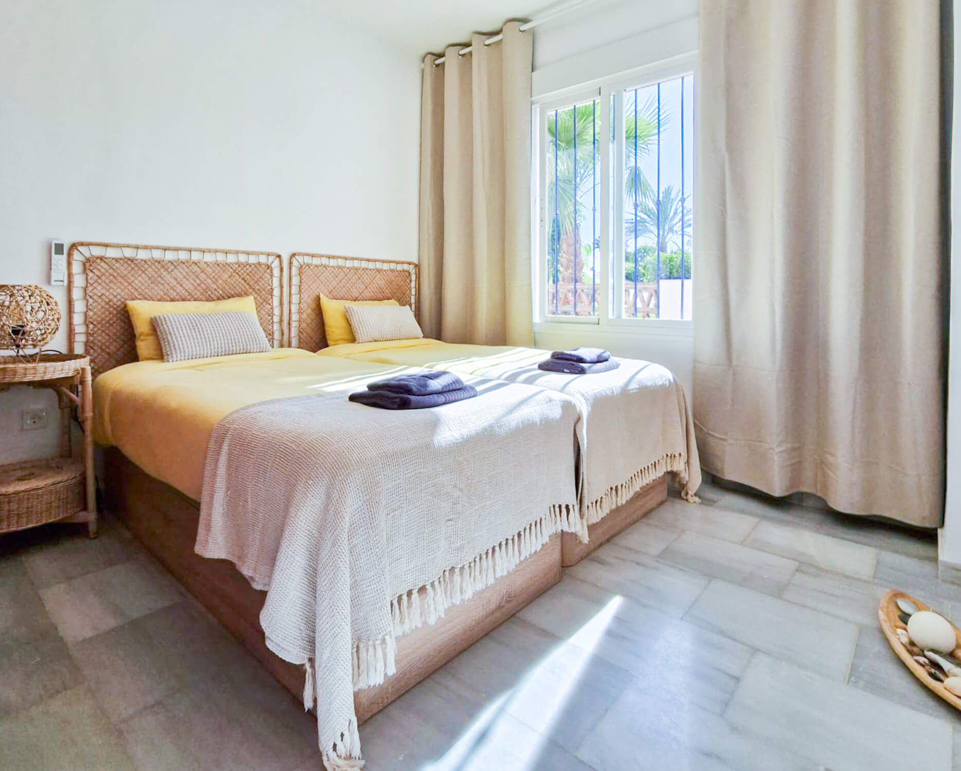 To idealna lokalizacja na wypoczynek w Hiszpanii – blisko plaży, sklepów, restauracji i klubu golfowego. Na terenie osiedla do dyspozycji gości: 2 baseny zewnętrzne, basen kryty, brodzik, siłownia i korty sportowe.